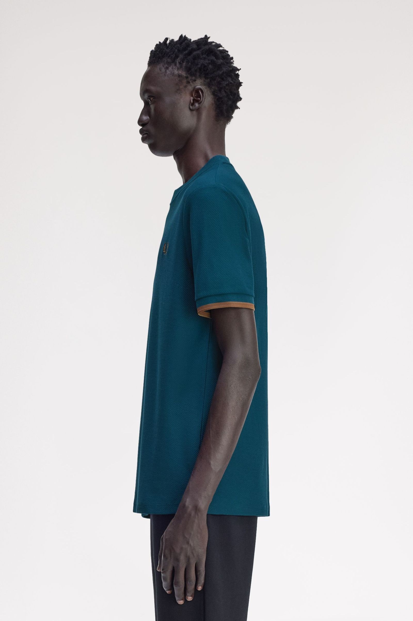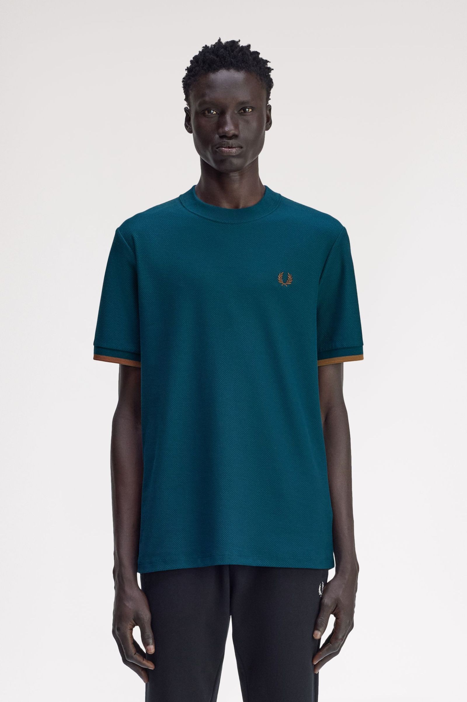 Το Fred Perry M4654-Z23 είναι ένα ανδρικό T-shirt από υφή πικέ βαμβακιού (cotton piqué), σχεδιασμένο με κομψότητα και λεπτομέρεια.