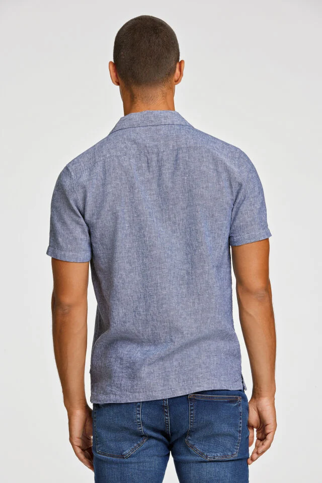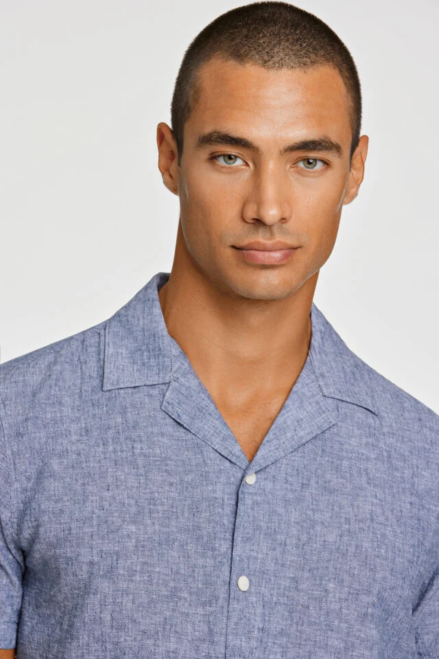 Κοντό μανίκι με γιακά τύπου resort και χαλαρή, καλοκαιρινή αίσθηση. Κατασκευασμένο από απαλό και αναπνεύσιμο μείγμα λινού και βαμβακιού που προσθέτει μια φυσική υφή στο ύφασμα. Ο καθαρός, απλός σχεδιασμός το καθιστά εύκολο στο ντύσιμο, ενώ η χαλαρή εφαρμογή εφαρμόζει κοντά στο σώμα χωρίς να είναι σφιχτό.