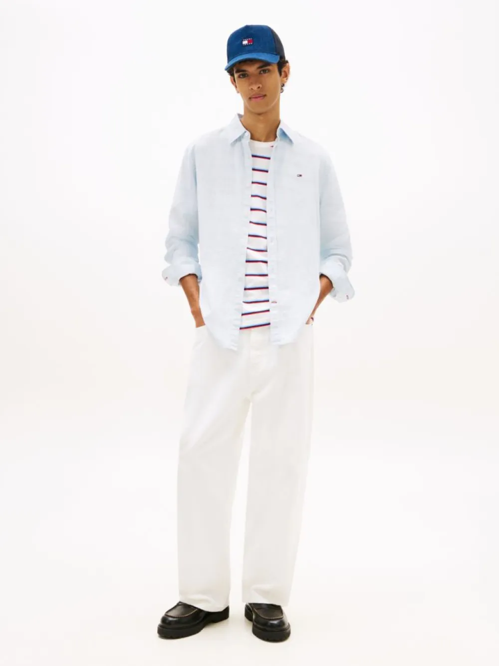 Tommy Jeans Ανδρικό Μακρυμάνικο Λινό Πουκάμισο Tjm Reg Linen Blend Shirt Ext DM0DM22761-C3Q Sweet Blue