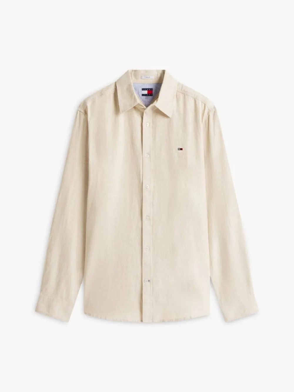 Tommy Jeans Ανδρικό Μακρυμάνικο Λινό Πουκάμισο Tjm Reg Linen Blend Shirt Ext DM0DM22761-AB9 Gentle Gold